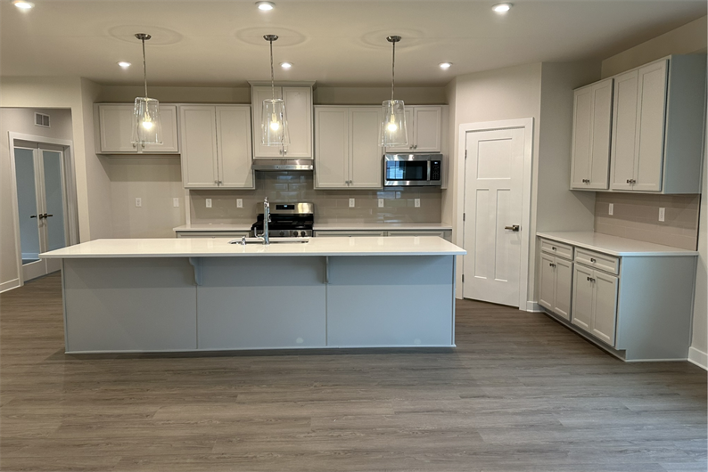 This Palladio 2-Story home boasts style and space, all set on a homesite will beautiful views. Enter through the spacious 2-car garage, or the covered entry. Upon entry, find a first-floor bedroom and full bathroom in the hall, as well as a flex room with french doors – perfect for a home office or hobby space. The wide-open kitchen, dining room, and family room effortlessly blend together, making entertaining a dream. The kitchen showcases upgraded light grey cabinetry, a tile backsplash, quartz countertops, and a full suite of stainless steel appliances. For a polished look, enjoy luxury vinyl plank flooring throughout the main level. Just off the family room, enjoy outdoor living on the rear covered porch. Designed with comfort in mind, the main-level owner’s suite features a tray ceiling, a massive walk-in closet, and an en suite bathroom with a private water closet and dual vanity. Upstairs, an additional bedroom, full bathroom, and loft provide the perfect retreat for guests. Schedule your appointment today to learn how you can secure and move into this home as soon as possible!