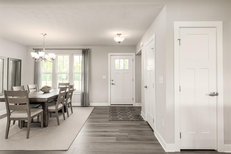 This Aviano home blends thoughtful design with modern comfort, set on a desirable homesite with no rear neighbors and open-space views. Step onto the welcoming covered entry and into a bright, open layout built for today’s lifestyle. A generous family room, complete with a gas fireplace, flows seamlessly into the dining area and a beautifully upgraded kitchen. Here, you’ll find a large kitchen island, quartz countertops, chrome fixtures, upgraded white cabinetry, luxury vinyl plank flooring, and included appliances (excluding refrigerator), creating the perfect space for both entertaining and everyday living. The main level continues to impress with natural light and functionality throughout.