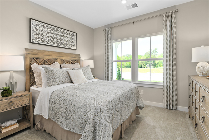 The owner's suite is a private retreat with a generously sized walk-in closet and a spa-like bath featuring tile surround for a clean, timeless finish. Additional bedrooms offer flexibility for guests, hobbies, or a quiet workspace – giving you options to make the home your own.