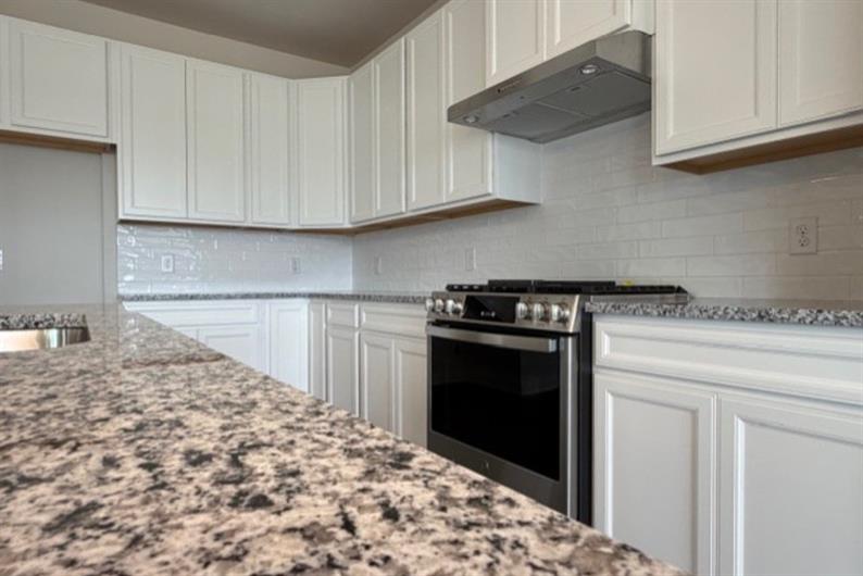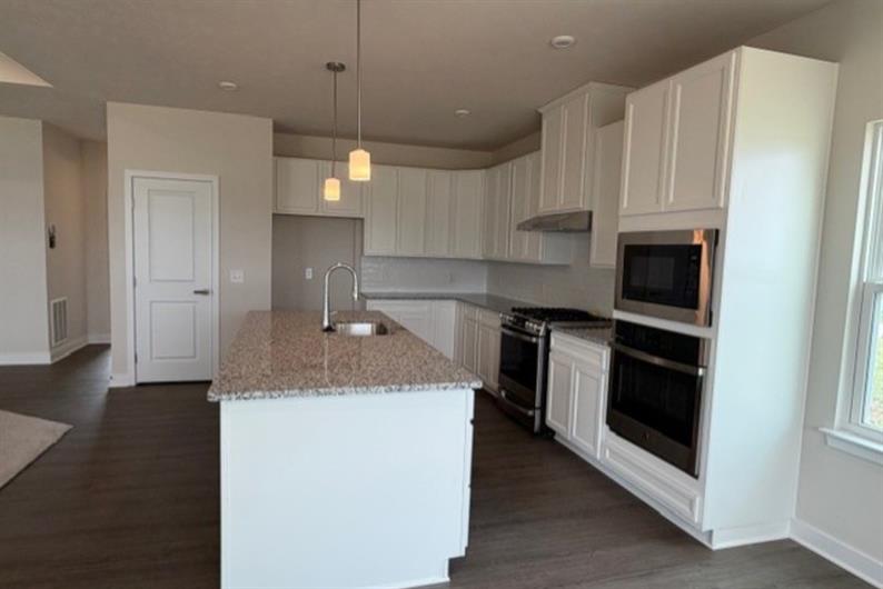 Step into the Cumberland, a beautifully designed single-family home that blends style, comfort, and future potential. A charming covered entry welcomes you inside to an open, airy floorplan where the spacious great room flows effortlessly into the gourmet kitchen and dining area - perfect for entertaining or everyday living. The kitchen shines with granite countertops, white cabinetry, tile backslash, a General Electric Profile Series gas range, microwave, wall oven, disposal, and a hood vented to the outside.
