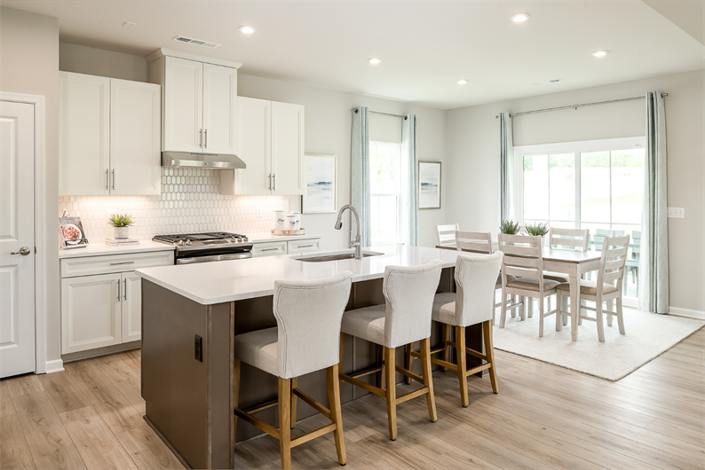 The Ballenger offers the perfect floorplan for your growing family offering the ideal amount of space that delivers on flexibility. Enter through the covered porch into a flex room – perfect for a home office for play room. A large modern island in the kitchen flows neatly into the dining area and family room. your kitchen is fully equipped with upgraded finishes like quartz counters, 42" cabinets and appliances included. Upstairs, the owner’s suite offers two separate walk-in closets and a private bathroom. Pick a basement homesite and finish it for additional living space, an extra bedroom and full bathroom for the extra room you've been needing. Visit today to learn more!