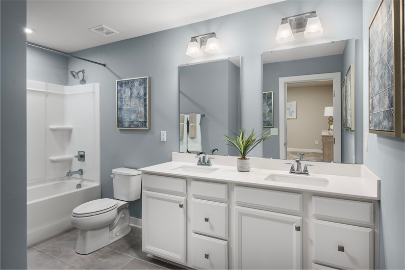 The first-floor owner's suite provides the convenience of main-level living, complete with a well-appointed bath featuring dual vanities and a tile surround. Upstairs, three additional bedrooms offer flexible space – ideal for visiting guests, hobbies, or storage – allowing the home to adapt as your needs evolve.