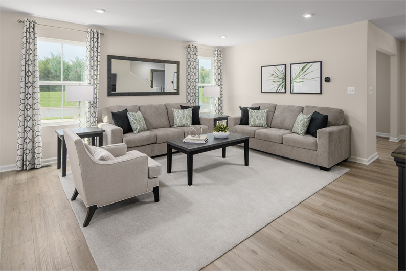 The Hazel is a spacious and flexible two-story single-family home designed to accommodate modern living with room to grow. Enjoy the convenience of a first floor guest suite and flex room that is perfect for an office or play area. Everyone has room to spread out with 5 bedrooms, 3 full bathrooms and a 2nd floor loft. No need to pay for costly renovations, upgrades like luxury vinyl plank flooring, dual vanities, and all appliances - even the washer and dryer - are included. Visit today to learn more about this oversized featured homesite.