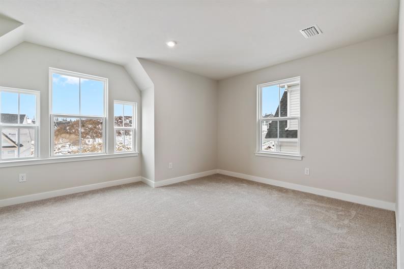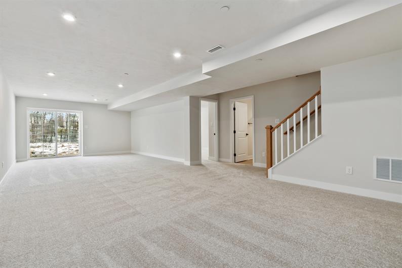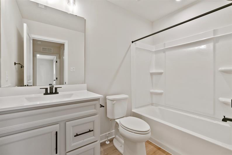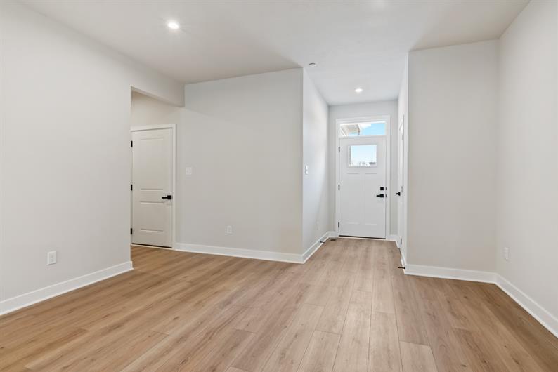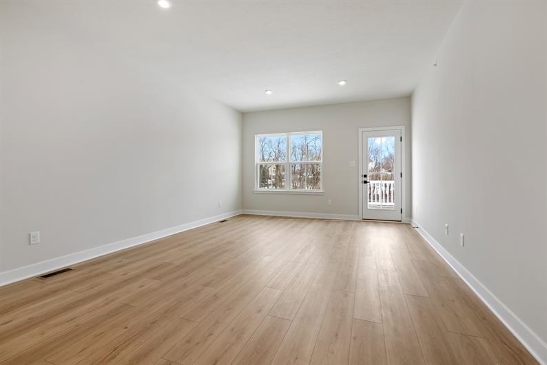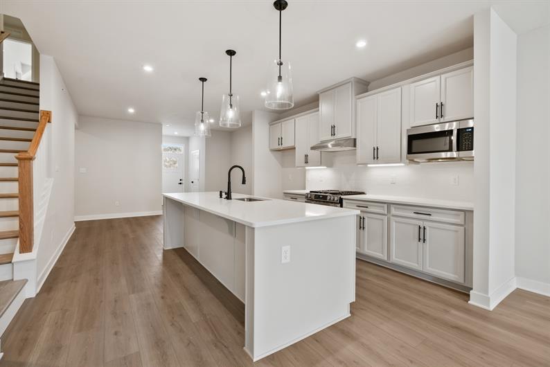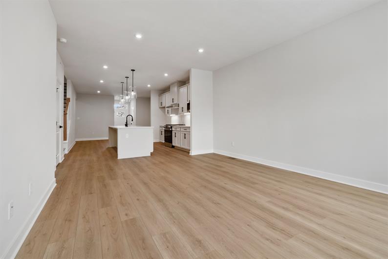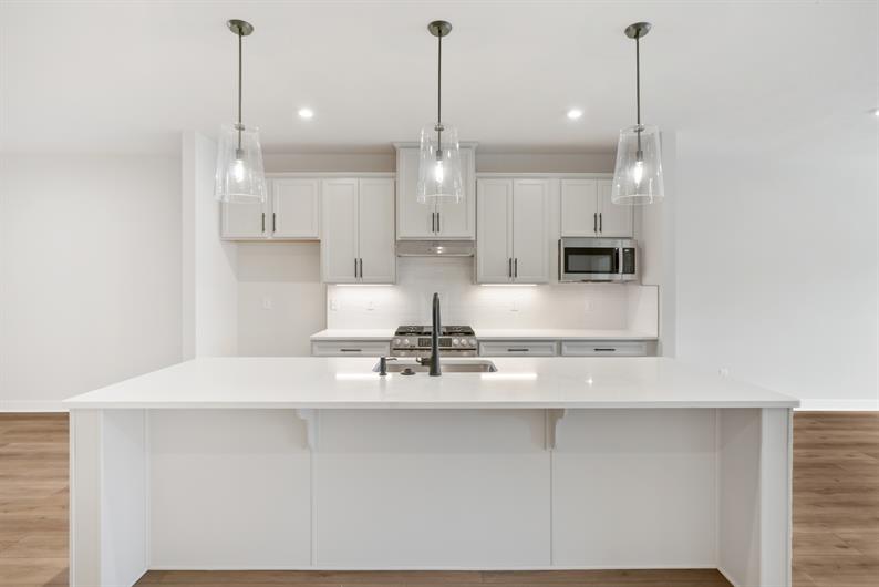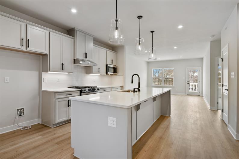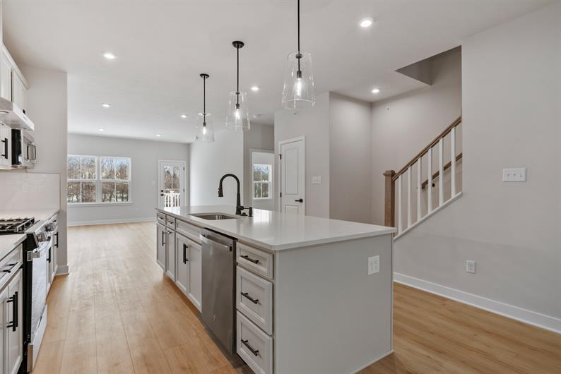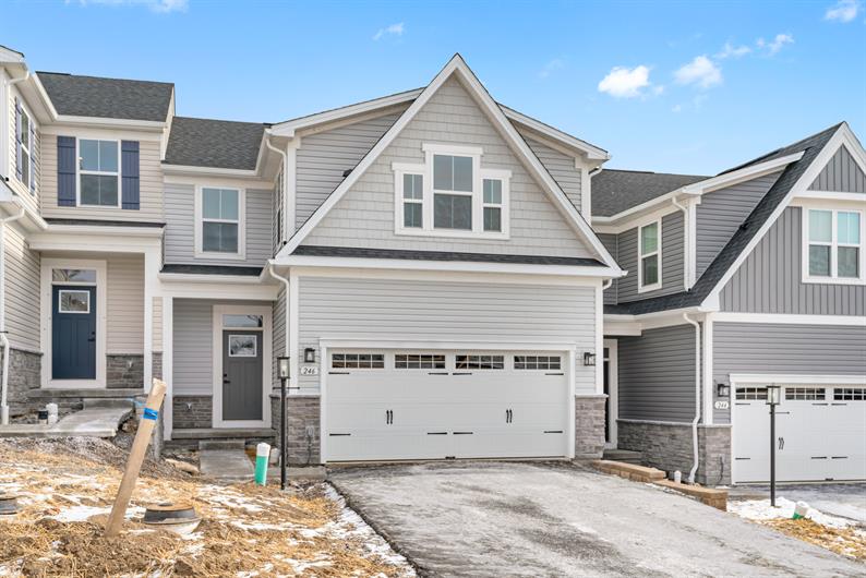 Say goodbye to yard work and enjoy low-maintenance living with lawn care and snow removal included. Inside, luxury vinyl plank flooring flows throughout the main living area, setting the tone for modern elegance. The gourmet kitchen features an extended island, quartz countertops, pendant lighting and a spacious layout—perfect for hosting gatherings. Enjoy a morning cup of coffee watching the sunrise from your Covered Deck. Retreat to your first-floor owner’s suite, where a Roman shower wrapped in ceramic tile creates a spa-like escape.