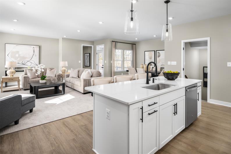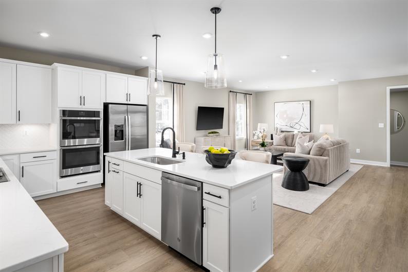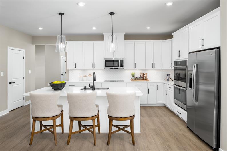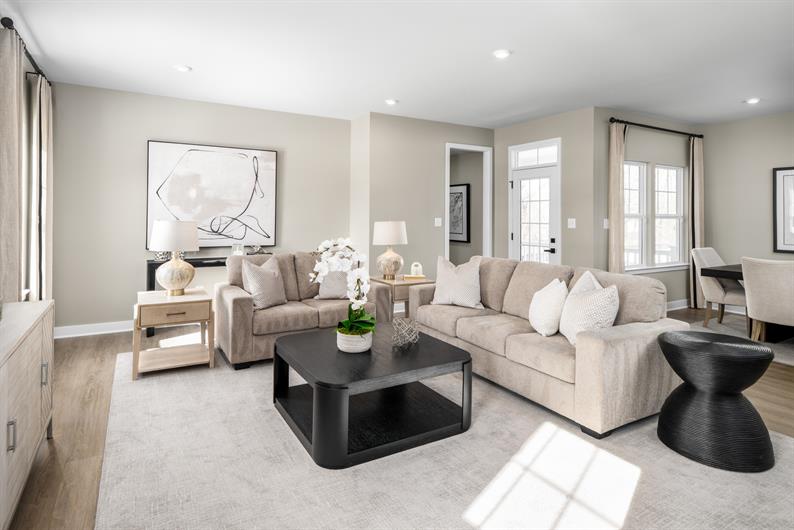 This Rockefeller home blends style and space. Enter through the 2-car garage or front door into a formal dining room and continue into the wide open main living area featuring an upscale eat-in kitchen and large living room. Enjoy luxury vinyl plank flooring throughout the first floor, providing an elevated look. The kitchen showcases upgraded white cabinetry, quartz countertops, a tile backsplash, an oversized island, and included stainless steel appliances with a double wall oven and hooded vent. Use finished basement for an entire extra level of living space.