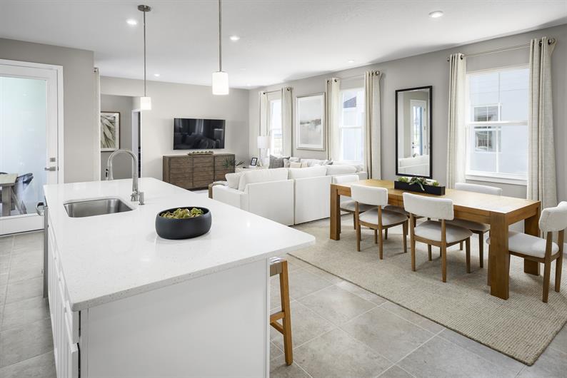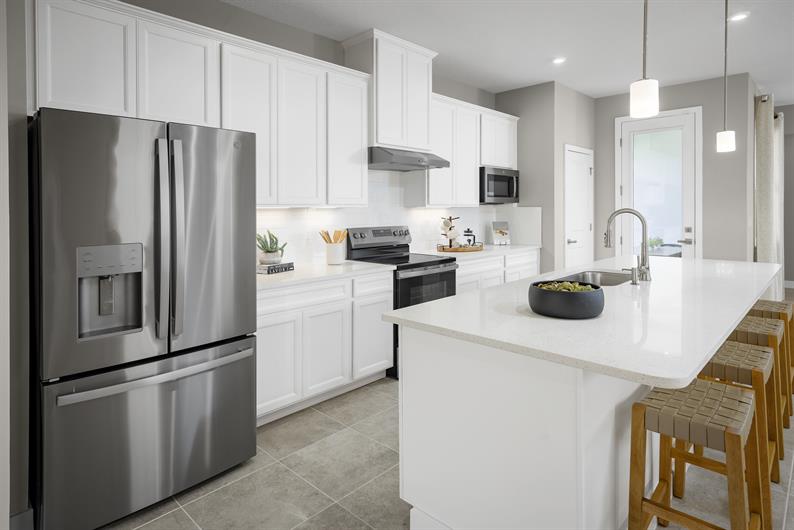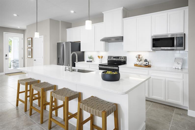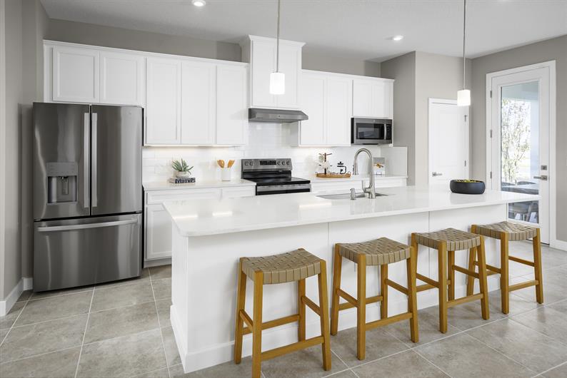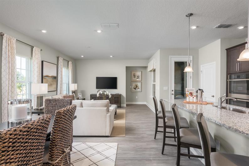The Hutchinson single-family home has everything you want. Enter through your rear 2-car garage and say hi to friendly faces in the great room. Dinner smells amazing in your gourmet kitchen. It’ll taste even better once it’s moved from the island to your lanai. A flex space at the front of your home became your office and gym, perfect for a quick workout. After reading in your 2nd-floor loft, just outside 2 bedrooms and a full bath, head to your private owner’s suite. This spacious escape has a walk-in closet and double vanity bath.