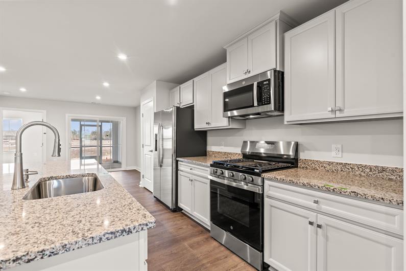 Ready Now! This Nassau Cove truly lives up to its name. Enter this attached home through the one-car garage with a car charging outlet and step right into the gorgeous gourmet kitchen with granite countertops, tile backsplash, gas range, and all stainless steel appliances included. Its large center island overlooks both the inviting great room and the formal dining space featuring luxury vinyl plank flooring throughout.