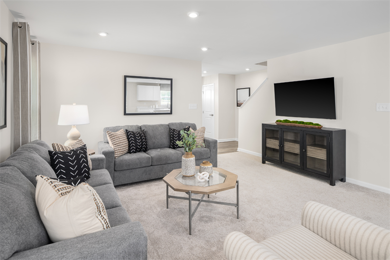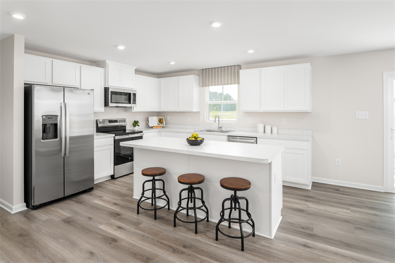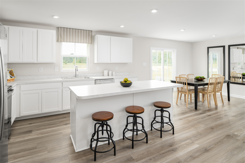 Set on an oversized corner homesite, this home provides extra space and privacy. Inside, luxury vinyl plank flooring flows throughout the main living areas, creating a warm and durable foundation for everyday life. The open-concept design brings the family room, dining area, and kitchen together for effortless entertaining.