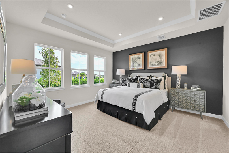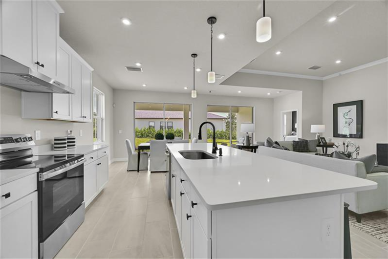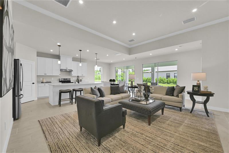 Welcome home to the Patterson, a December move-in-ready home where Florida living gets an upgrade! This isn’t your average home – we’re talking about soaring 11’ ceilings that will make your Great Room feel like a palace. Picture yourself hosting the ultimate indoor-outdoor party, with massive sliding glass doors that transform your spacious 24’4” Lanai into an extension of your living space. The showstopper? A chef’s dream kitchen featuring a massive 9’9” island perfect for everything from Sunday meal prep to Friday night pizza parties. With four bedrooms (including a luxurious Owner’s Suite that feels like a 5-star resort) and the option to turn one bedroom into the home office of your dreams, The Patterson isn’t just a house – it’s your ticket to living the sweet life, Florida style!