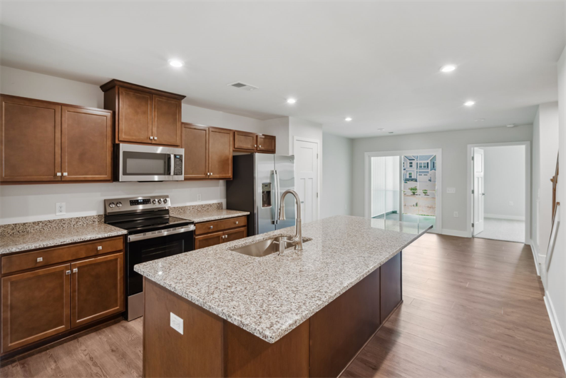 Ready NOW! Enter this attached home through the one-car garage and step right into the gorgeous gourmet kitchen with granite countertops, truffle cabinets, and all stainless steel appliances included—even the fridge! Its center island overlooks both the inviting great room and the formal dining space. Entertain family and friends here or outside on the relaxing covered rear patio. The main level also includes your luxurious owner’s suite, which features a dual vanity bath and huge walk-in closet. Upstairs, you’ll find two spacious bedrooms and a full bath.