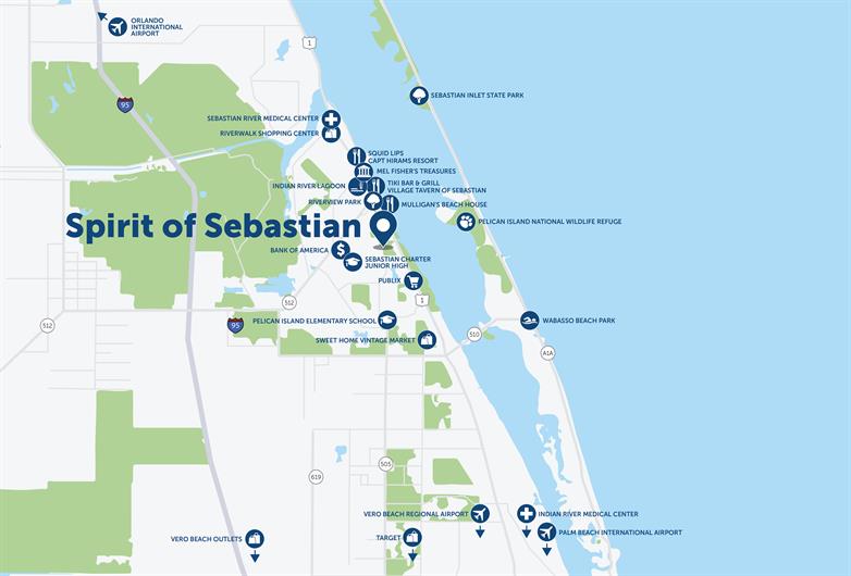 Sebastian is known for its unspoiled beauty and pristine waterways, where you can take a scenic boat ride, kayak, paddleboard, and more. The area is also recognized as Florida's premier fishing and boating spot on the East Coast and is home to beautiful beaches, America's first National Wildlife Refuge, and Pelican Island. The historic downtown streetscape includes a scenic riverfront walking path and several waterfront restaurants, where you can enjoy fresh seafood, tropical drinks, and live entertainment. Head over to Earl's Hideaway Lounge or Tiki Bar & Grill, just 1.5 miles away. Adventure seekers will love Mel Fisher's Treasure Museum, where you can uncover authentic shipwreck treasures and experience the fun, romance, and adventure of treasure hunting first-hand.