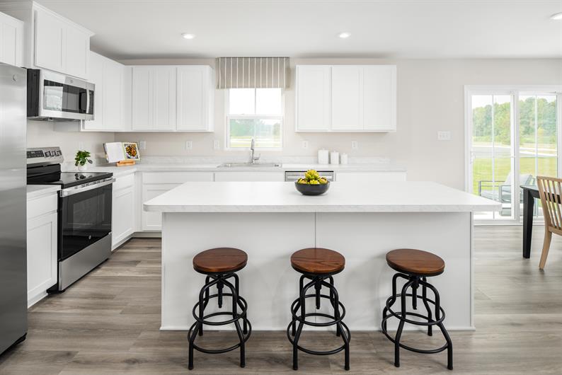 The Hazel features 5 bedrooms and 3 bathrooms in over 2500 square feet of space. Off the foyer is a private flex space perfect for a home office or play room. Plus, with an open-concept main level, hosting the holidays or birthday parties are easier than ever.Tucked back off of the kitchen and dining area is a first floor bedroom with a full bath next to it so your out-of-town guests or in-laws can have a space of their own.