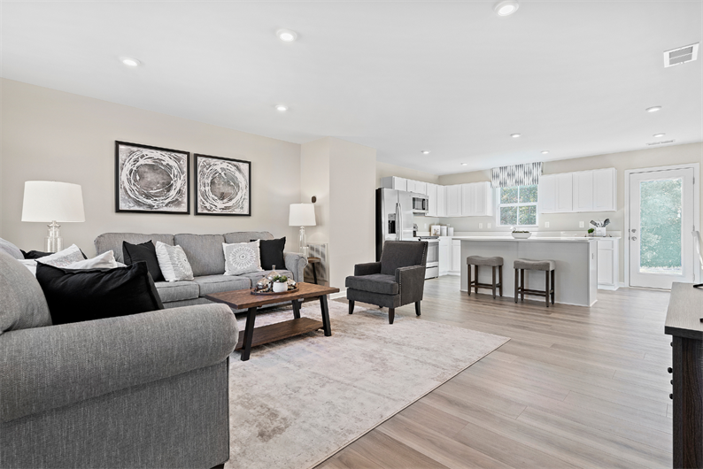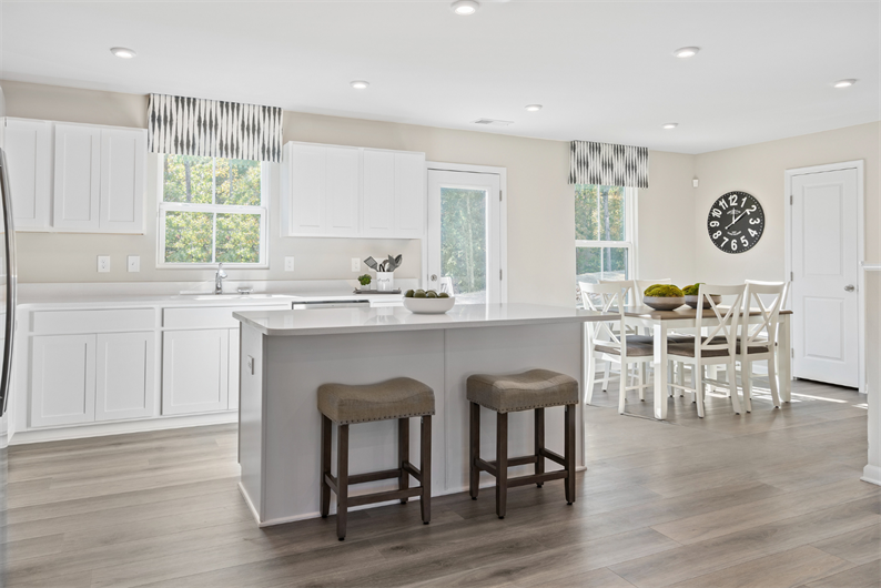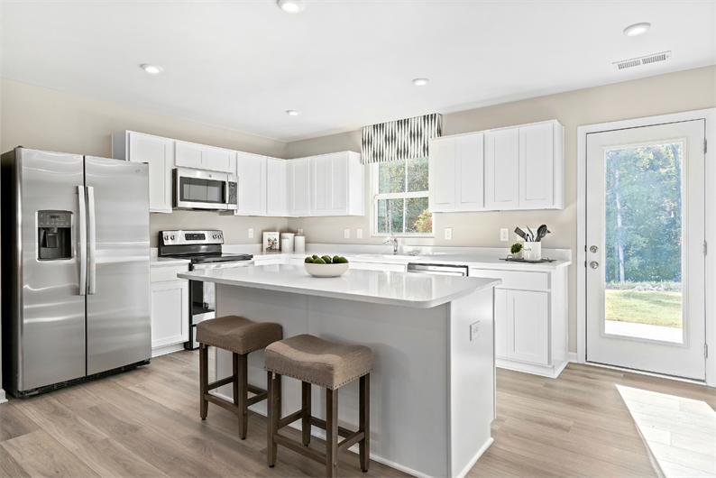 Step inside through the 2-car garage, or the inviting front entryway. The main level showcases luxury vinyl plank flooring and a versatile flex room, ideal for a home office. The spacious open-concept layout adjoins the great room, dining area, and kitchen, making entertaining family and friends a breeze. The kitchen boasts upgraded white cabinetry, a pantry, large eat-at island and chrome fixtures. Upstairs, find 4 bedrooms, full bathroom, and a laundry room. The owner’s suite is a true sanctuary, featuring a generous walk-in closet and a private bath with a dual vanity. Schedule your appointment today to learn how you can secure and move into this home this spring.