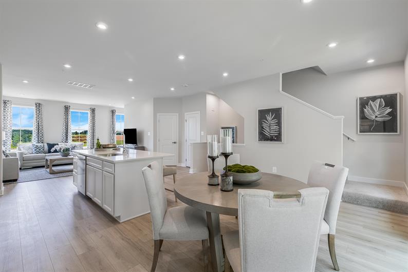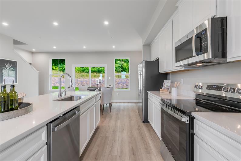 Welcome to Ryan Homes at Creek Water Townhomes! The Overture is a luxurious, spacious townhome designed for modern living. Enter through a welcoming foyer or private two-car garage into a finished rec room or optional guest suite. The main level features an open-concept kitchen, dining area, and great room—perfect for entertaining—bathed in natural light from expansive windows and sliding glass doors.
