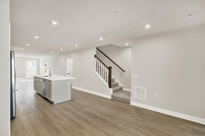 Nestled on a beautiful wooded homesite, this thoughtfully designed home features upgraded Harbor cabinetry, sleek quartz countertops, and luxury vinyl plank flooring throughout the main living area. Enjoy cooking in the modern kitchen with a stainless steel appliance package and gas range, then unwind on the spacious rear covered porch—perfect for creating your own peaceful backyard retreat.