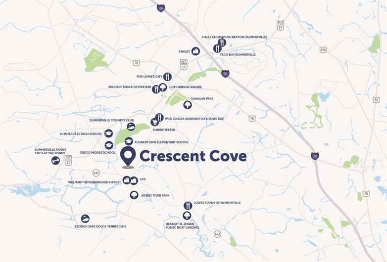 Located just off Dorchester Road in Summerville, you'll enjoy convenient access to everyday conveniences without the congestion. From your morning commute to grocery shopping to exploring downtown Summerville's antique shops and local eateries, everything is within reach. And for more adventure, hop on I-26 to be in Charleston in 30 minutes!
