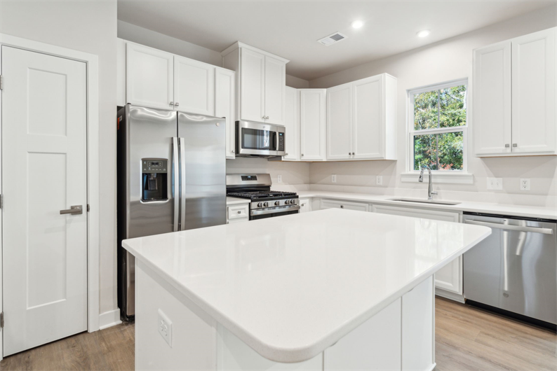 Upstairs you'll find a private and luxurious owner's suite with a dual-vanity bathroom and large walk-in closet. Enjoy upgraded finishes, lighting, and all appliances included—even the washer and dryer.