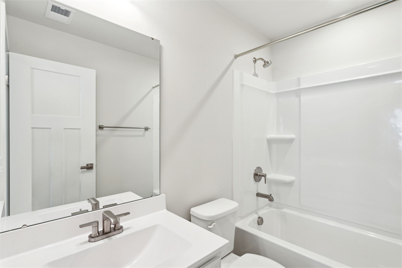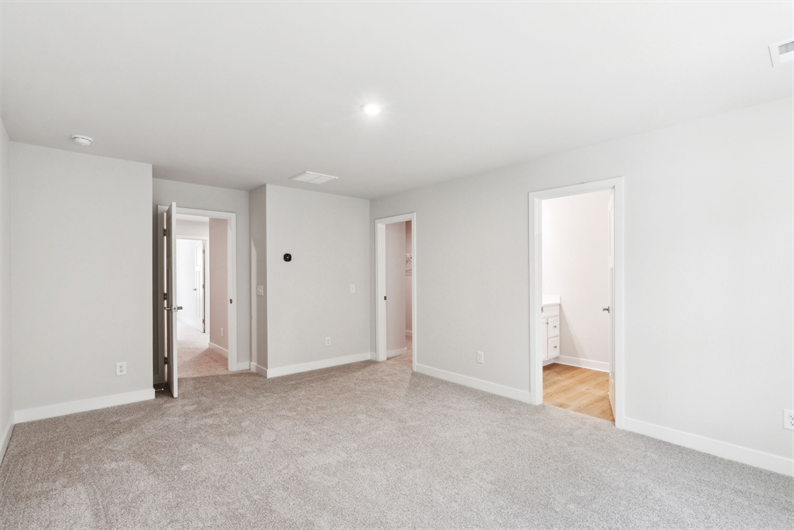 Upstairs you'll find a private and luxurious owner's suite with a dual-vanity bathroom and large walk-in closet. Plus, enjoy upgraded finishes and lighting.