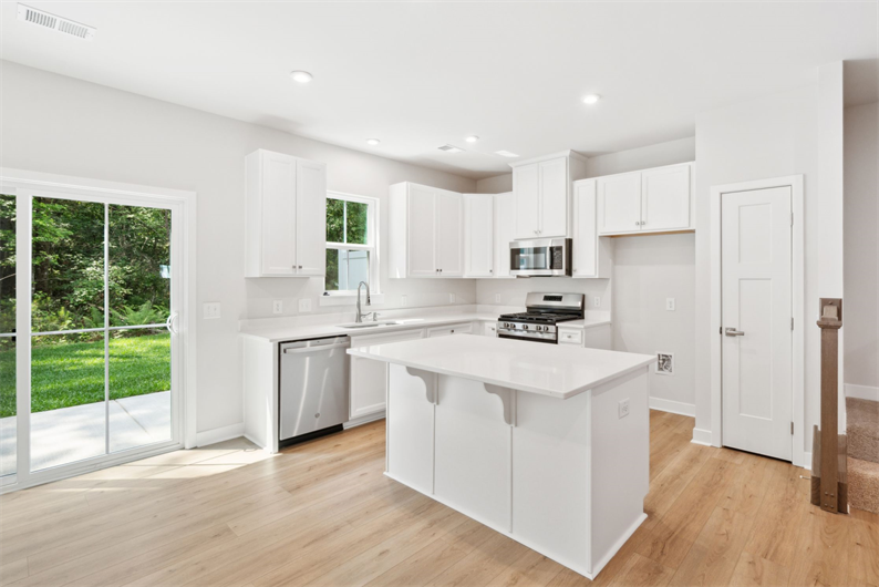 Explore this end unit Odessa with 3 bedrooms, 2.5 bathrooms, and over 1,500 sq. ft. of living space. Enjoy the privacy of having only one shared wall and extra natural light throughout the home. The main level features luxury vinyl plank flooring in the family room and an open concept great room. Flowing seamlessly into the gourmet kitchen, enjoy upgraded white cabinets, quartz countertops, and stainless steel appliances.