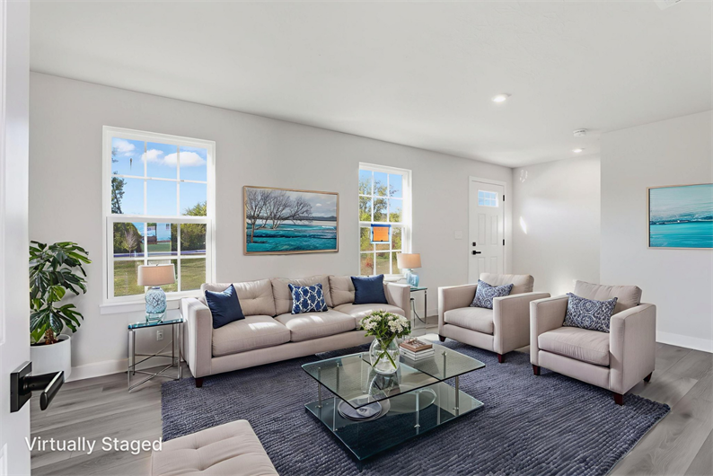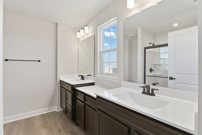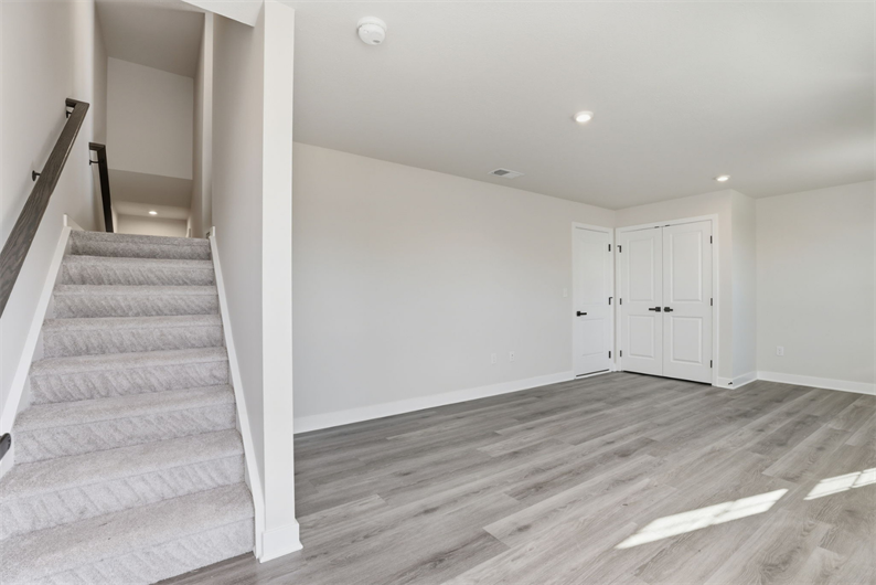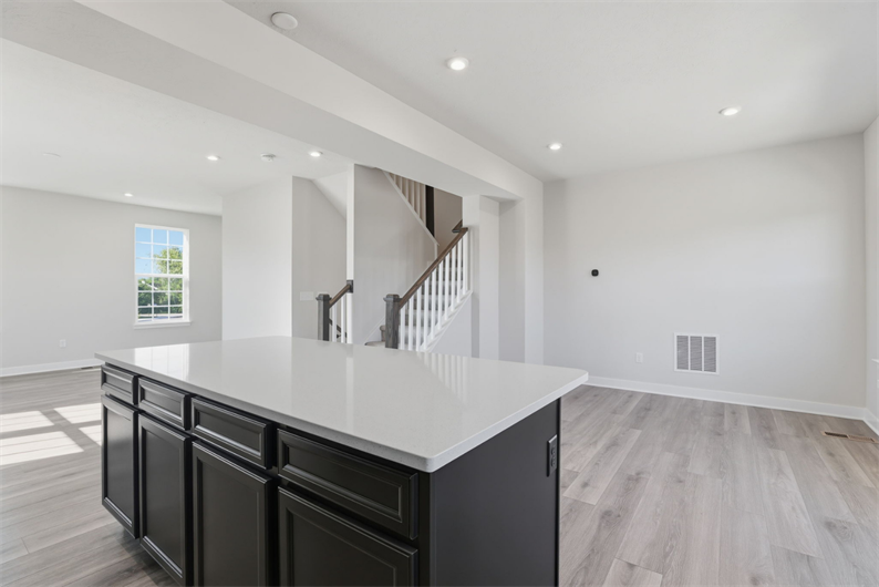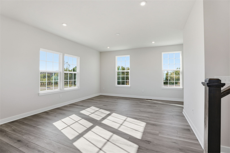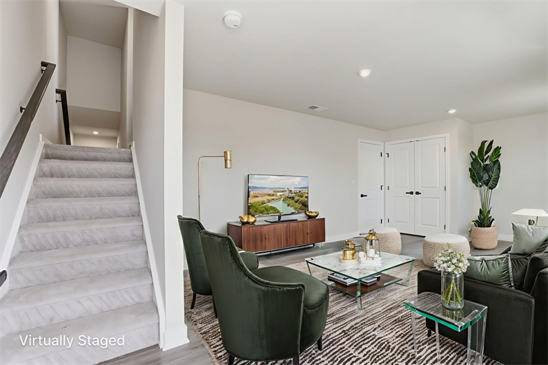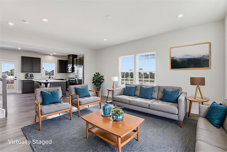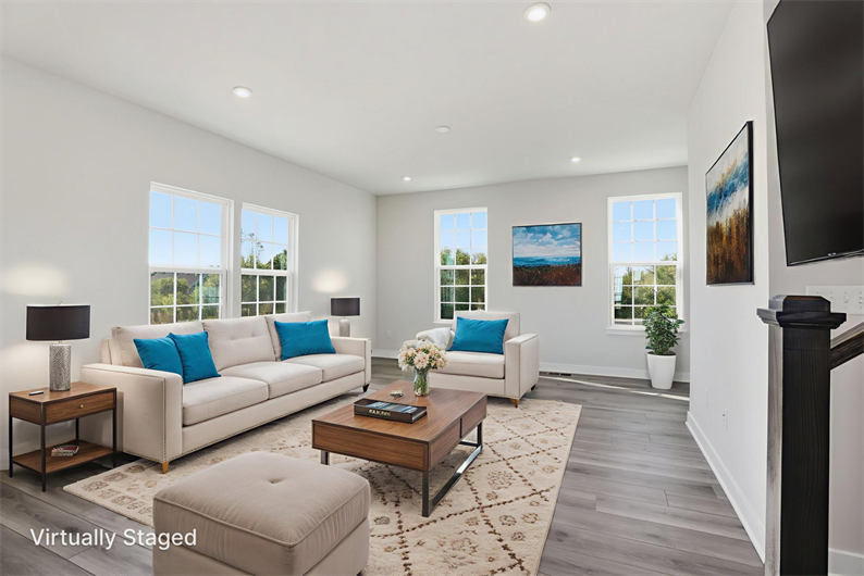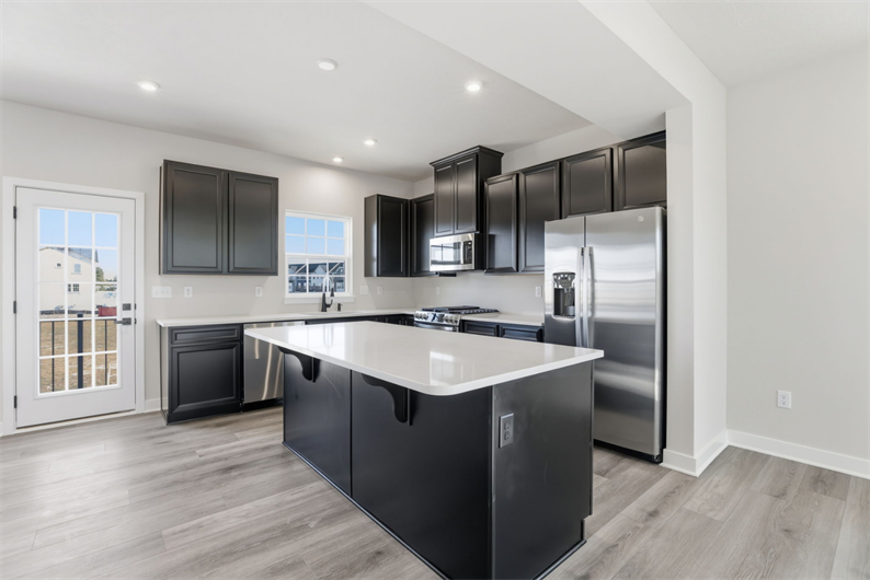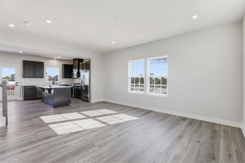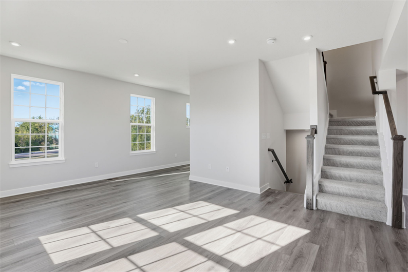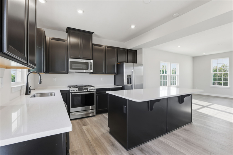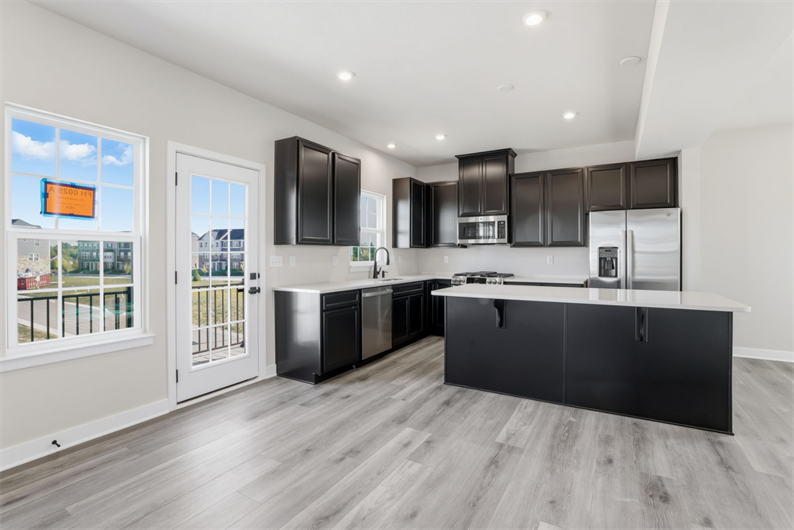 This home blends modern design with generous space, perfectly positioned on a premier end homesite that overlooks expansive greenery and mature trees with no homes in sight from the front. Enter through the attached garage or the versatile finished basement, ideal for a home office, media room, or play area. The open-concept second floor features a stylish kitchen with quartz countertops, a large island, upgraded espresso cabinetry, and luxury vinyl plank flooring throughout. Plus, all appliances are included – even the refrigerator! Step out onto your oversized rear deck to enjoy peaceful views. Upstairs, discover two secondary bedrooms, a full hall bath, and a serene owner’s suite with a walk-in closet and a spa-inspired en suite bath featuring dual vanities and a deluxe shower. Schedule your tour today and discover how you can move in October 2025!