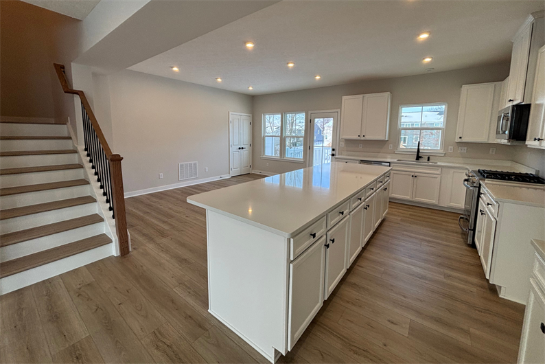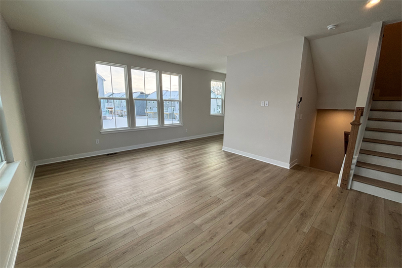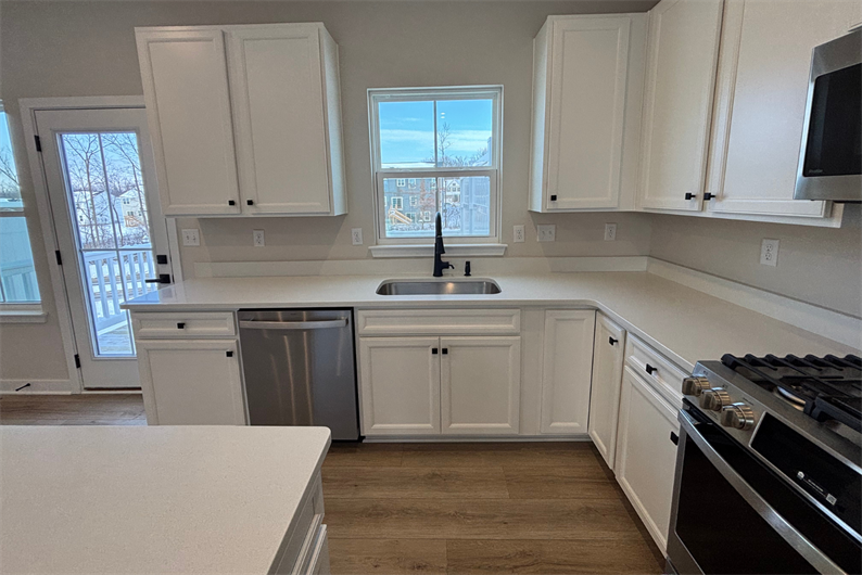 This is a single-family townhome, meaning you own the land, don’t share any walls, and get the perks of low-maintenance living! Being on the end, this home has plenty of natural light and privacy. The interior matches the most current trends with bright and clean modern finishes, the black hardware contrasting with the white cabinets and quartz counters, and long-lasting luxury vinyl plank flooring and stairs throughout.