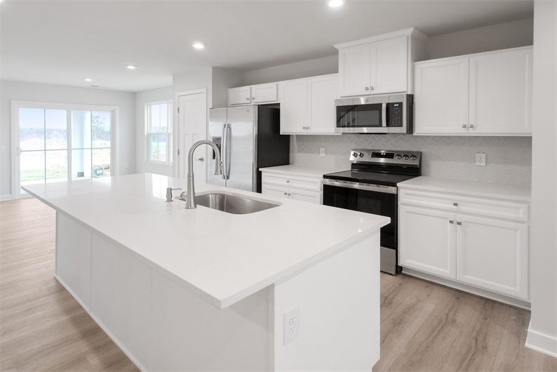 Enter through the attached garage and step into a beautifully arranged kitchen with a spacious center island that opens to both the great room and formal dining area. It’s the perfect setup for hosting family and friends, whether indoors or out on the optional patio.