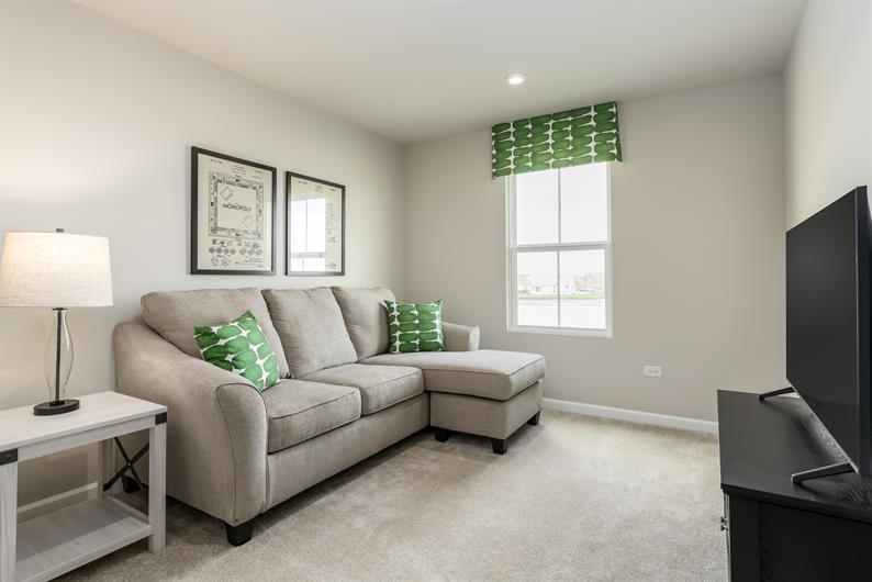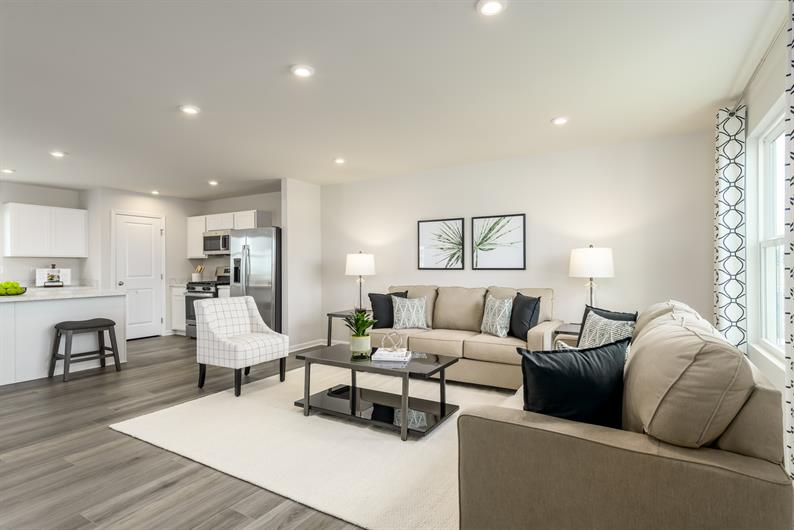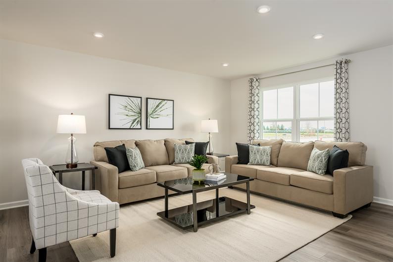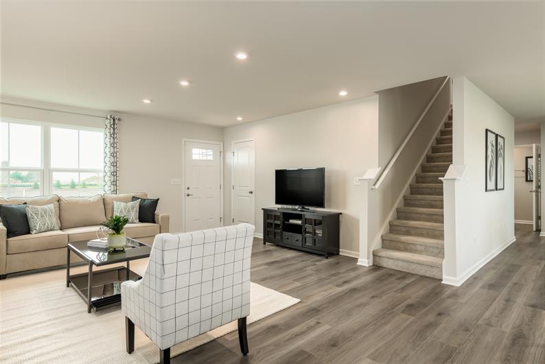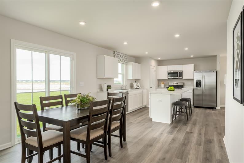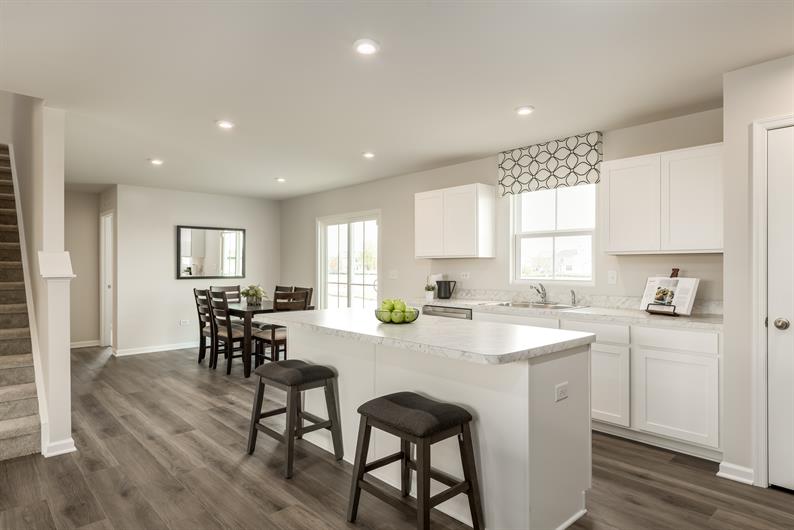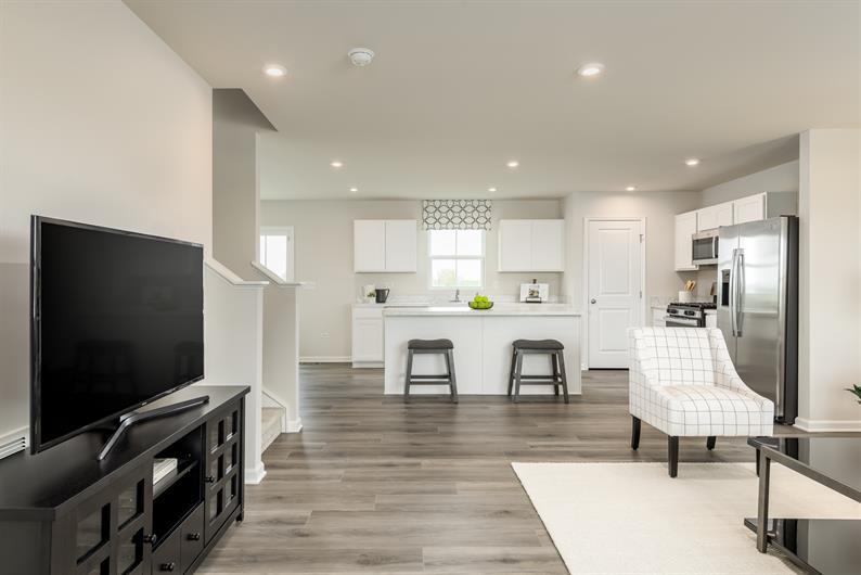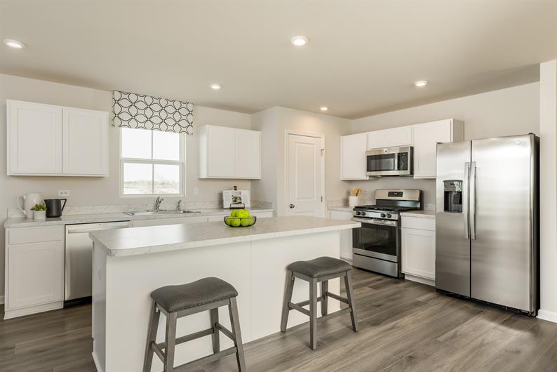 Step inside from the 2-car garage and discover a spacious great room that flows beautifully into the gourmet kitchen and dining area – perfect for hosting friends, relaxing after a long day, or enjoying weekend dinners at home. The kitchen features a large center island, warm truffle cabinetry, and included appliances, creating a stylish and function heart of the home. Just off the main living area, a versatile flex room offers the freedom to design a home office, creative space, or bonus room to fit your lifestyle.
