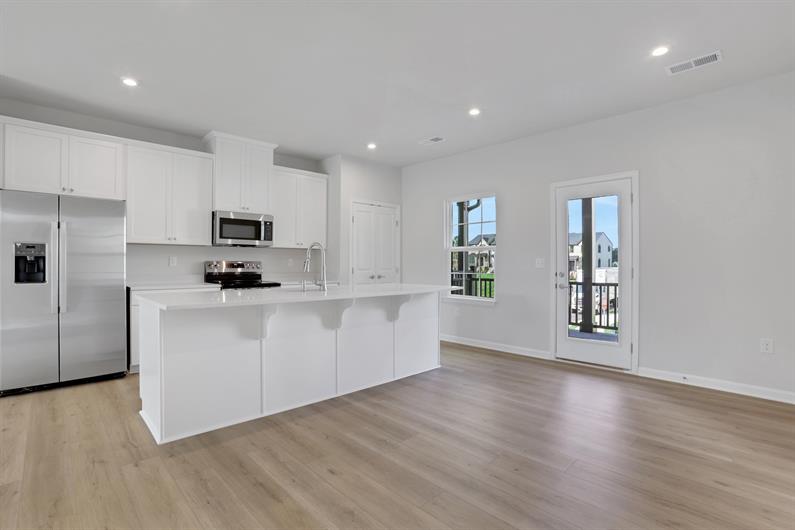 The convenience of townhome living meets the amenities of a single family home in Ryan’s Mozart. The sculptural staircase sets the tone of elegant simplicity and functionality that continues through the rest of the home. On the main living level, an enormous Kitchen with island opens onto a bright and airy Living Room, perfect for entertaining and featuring a handy coat closet. Upstairs are two spacious bedrooms with ample closet space, and a generous Owner’s Bedroom that features a tray ceiling and a huge walk-in closet. For a truly spa-like experience, the separate Owner’s Bath features a dual vanity and 5’ shower with dual shower heads.