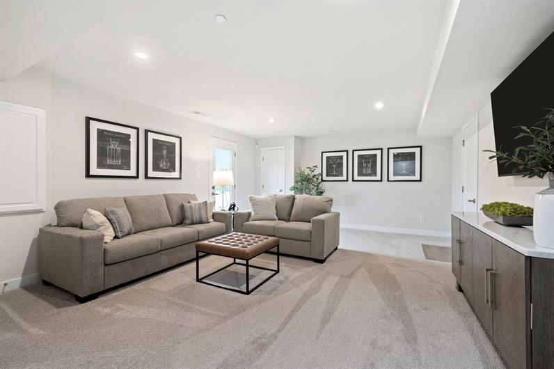 The Wexford townhome offers the spacious design of a single-family home. The main level features a huge living room, ideal for entertaining. The bright and airy dining area features a bank of windows and is open to a gourmet kitchen with an island. Upstairs is a luxurious owner's suite with a private bath and gigantic walk-in closet with shelves. Two secondary bedrooms with ample closet space, a laundry area, and a hall bath complete the 2nd floor. Complete the lower level for extra entertaining space. You’ll love The Wexford.