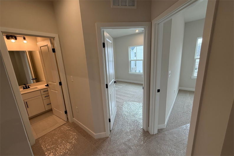On the bedroom level, you’ll find two secondary bedrooms, a spacious hall bath, and a dedicated laundry area. The impressive owner’s suite offers a large walk-in closet and a private bath with a Roman shower and a dual quartz vanity. Schedule your visit today to tour this rare end-homesite opportunity and learn how you can make it yours!
