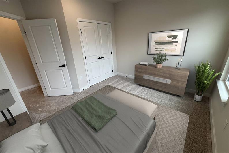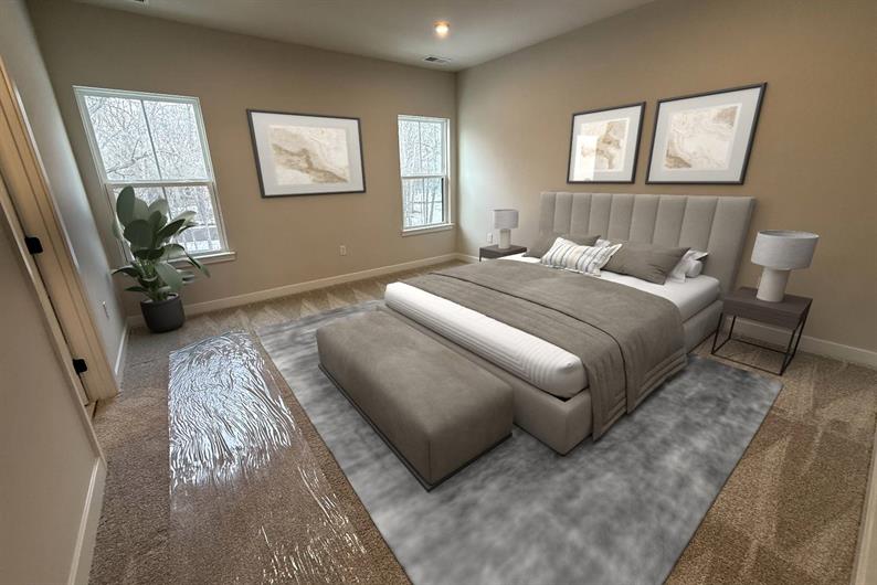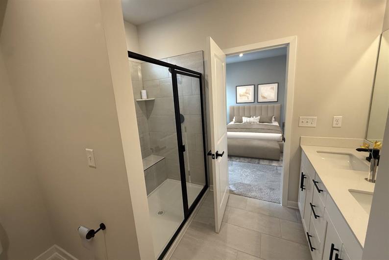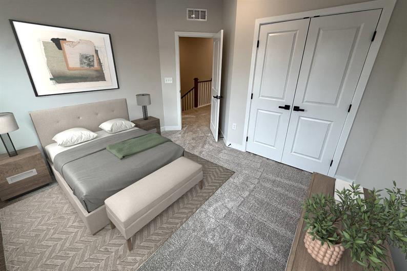 The upper level hosts two secondary bedrooms, a well-appointed hall bath, and a centrally located laundry area with an included washer and dryer. Retreat to the spacious owner's suite, highlighted by a generous walk-in closet and an en suite bath featuring a Roman shower, tile surround, and dual quartz vanities. Schedule your tour today! *Images shown feature a furnished interior for illustrative purposes only. Furniture, décor, and accessories are not included in the purchase price.*