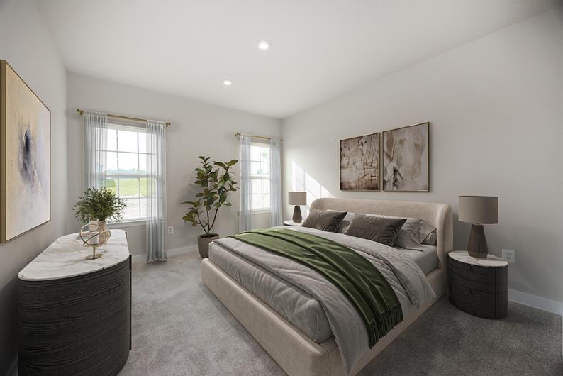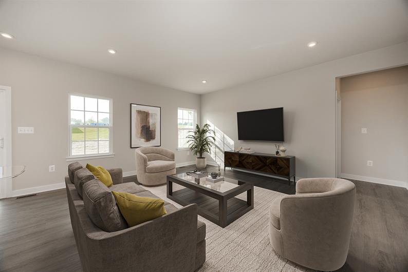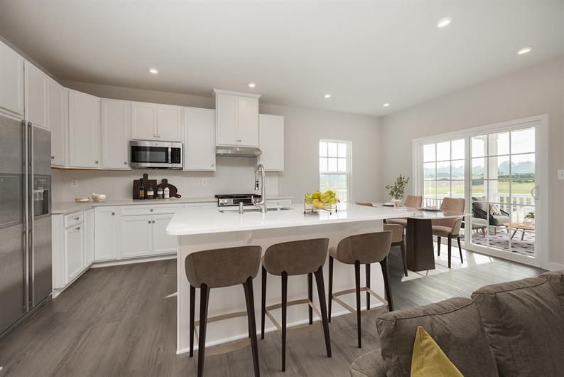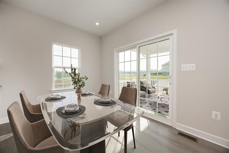The Alberti has everything you need to downsize without compromise. Right off the 2-car garage, a convenient arrival center is where you can drop your things. The gorgeous gourmet kitchen with a sprawling island overlooks both the formal dining room and welcoming family room. Your beautiful kitchen will include quartz countertops, 42" linen cabinets, pull out shelf in lower cabinets, tile backsplash, and stainless steel appliances, including the gas range, under-cabinet microwave, vent hood, dishwasher, and refrigerator. The first floor owner's suite, located right off the family room, offers luxury that can't be beat, with a walk-in closet, dual-vanity bath, and walk-in shower. The foyer, kitchen, dining room, and family room all have beautiful luxury vinyl plank flooring, making it super easy to clean! The first-floor guest bedroom and bath will make any of your guests feel right at home. A flex room rounds out the main level. The finished basement includes a rec room, plus an additional guest bedroom and full bath and a large unfinished space for all your storage needs. The spacious composite deck right off the family room is perfect for enjoying a warm summer night. Enjoy a spacious corner homesite with a flat, usable yard and the ability to fence.