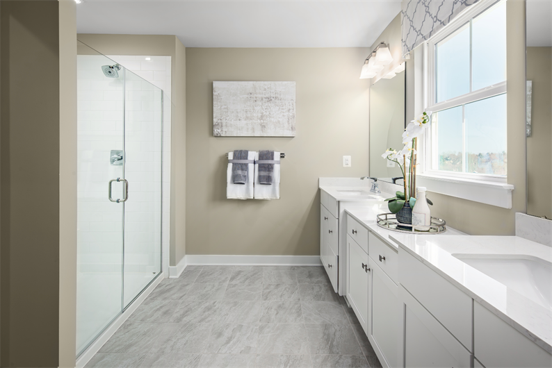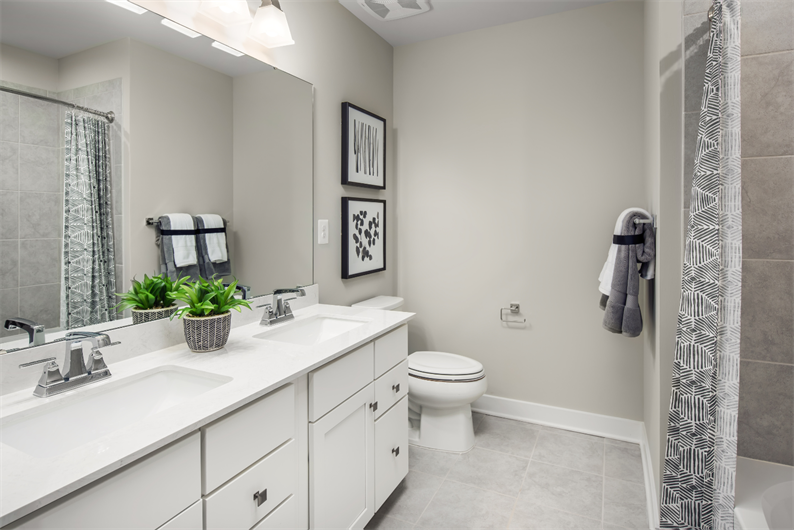 Upstairs, three secondary bedrooms each offer walk-in closets, plus a full bath and a loft with a flex room – perfect for the home office, playroom, or guest space. The owner's suite is a true retreat with dual vanities and two walk-in closets. Ceramic tile in all full bathrooms adds a sleek, durable touch.
