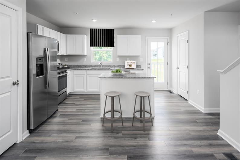This Dogwood quick move-in home features our most popular upgrades, including central air conditioning, all while set on a premier pond-view homesite. Enter the main level through the attached 1-car garage, or the inviting foyer. The open-concept great room, kitchen, and dining room, complete with luxury vinyl plank flooring, blend together seamlessly for easy entertaining. The modern kitchen offers upgraded white cabinetry, granite countertops, chrome fixtures, a kitchen island, and all-included appliances – even your washer and dryer are included! A convenient powder room completes the main level. Upstairs, find 2 secondary bedrooms, a full hall bath, laundry area, and the owner's suite. Your suite features a spacious walk-in closet and en suite bath with a dual vanity. Use the unfinished basement for additional storage, or finish it later for extra entertaining space. Contact us now to learn how you can secure this incredibly priced new home before it's gone!