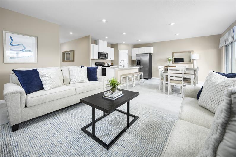 The Palm single-family home is purely amazing. 4 spacious bedrooms and a full bath offer all the space you need for family and friends to enjoy quiet comfort. Get everyone together in the great room for game night. Or gather around the dining table and center island for a mouthwatering homemade meal, fresh from the gorgeous gourmet kitchen. Enjoy some fresh air outside on the lovely lanai. Then call it a night and step into your luxurious owner’s suite. In here, a large walk-in closet and double vanity bath make everyday feel like spa day. Find your slice of paradise in The Palm.