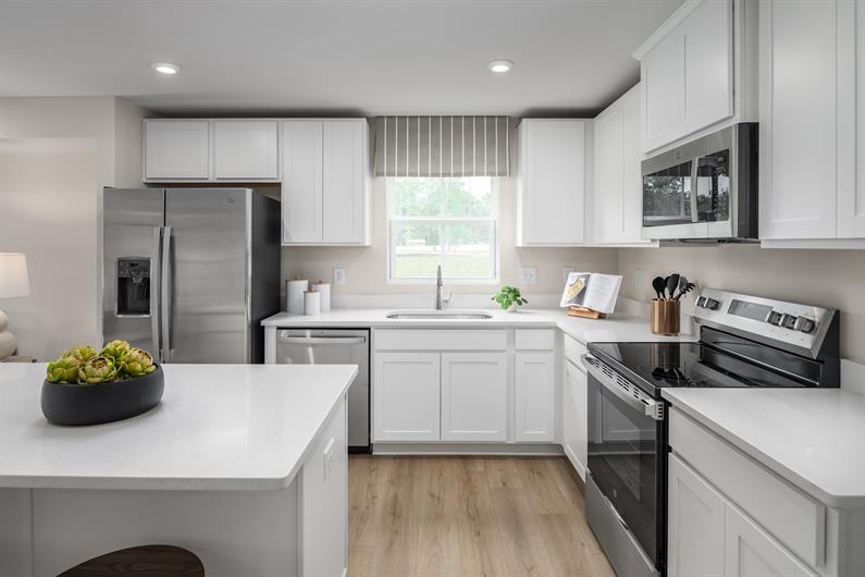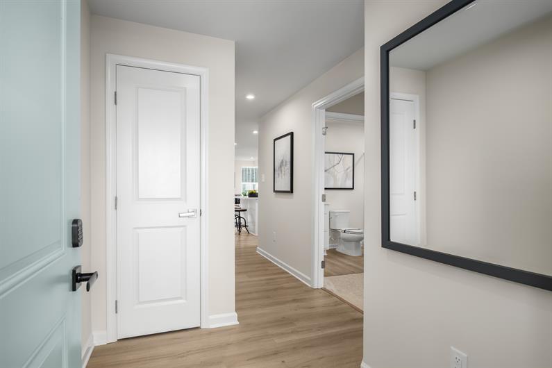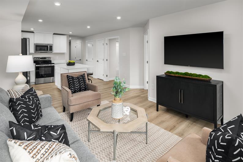 The Beech and Chestnut are thoughtfully designed one-over-one multi-family homes that offer townhome-style living at an attainable price point. The Beech, located on the lower level, and the Chestnut, on the upper level with flexible two or three-bedroom options, share an inviting covered entry. Both homes feature open-concept layouts with great rooms flowing into well appointed kitchens complete with islands and stainless-steel appliances. The homes prioritize livability with rear-facing living areas for privacy, outdoor spaces (patio for Beech, optional deck for Chestnut), generous storage solutions, and luxurious owner’s suites featuring walk-in closets and spa-like bathrooms. Charming exterior details like Board and Batten siding create curb appeal while maintaining affordability. Available with either 2x4 or 2x6 construction, these homes deliver smart design and modern amenities in an efficient, value-driven package.
