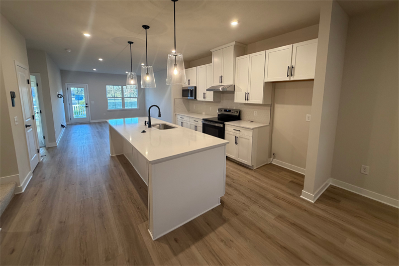 -Luxury vinyl plank flooring throughout the kitchen, dining, and living room