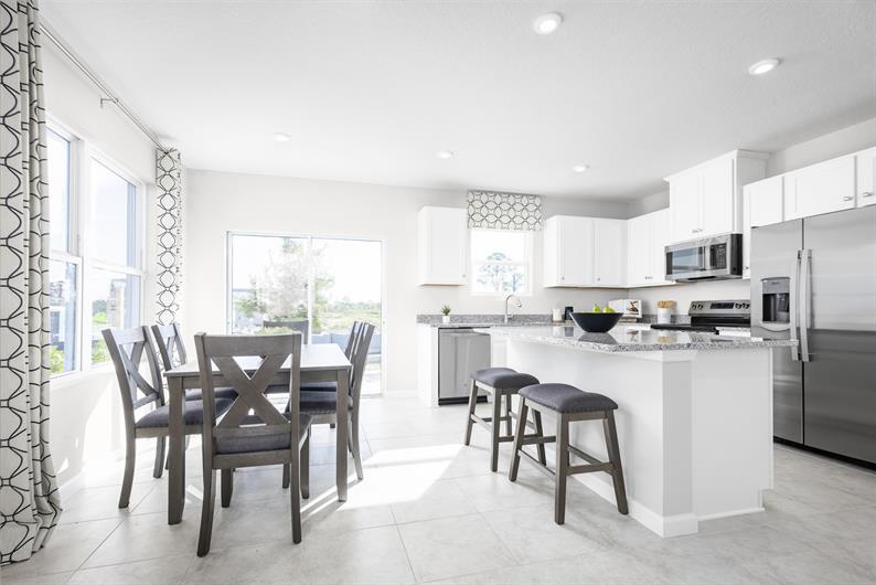 Our thoughtfully designed townhomes feature an attached garage and a private outdoor patio, offering 1,466 square feet of open concept living space. Inside, you’ll find three bedrooms—including a spacious owner’s suite—and two and a half baths. Choose from a variety of homesites, many with serene water or preserve views. Every home includes an inviting outdoor patio, perfect for relaxing or entertaining.