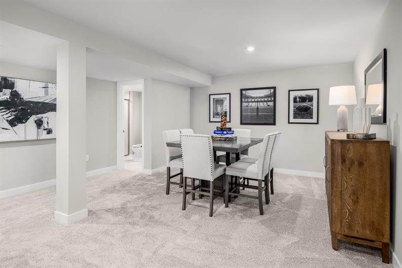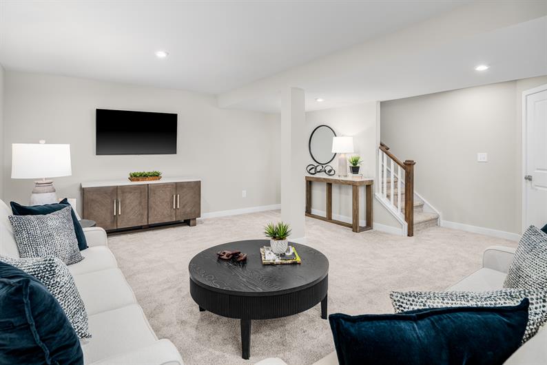 This Columbia home combines space and style, all while located on a premier homesite with no rear neighbors. Enter the home through the spacious 2-car garage, or the inviting foyer. Upon entry, find a flex room, ideal for a home office or playroom. The light-filled family room, dining room, and kitchen seamlessly blend together – easily entertain guests without missing a conversation. The kitchen features upgraded white cabinetry, quartz countertops, pendant lights, a tile backsplash, an oversized island, and a full suite of stainless steel appliances, including a washer and dryer! Enjoy luxury vinyl plank flooring throughout the main level, providing an elevated look. Extend your living space outdoors on the rear covered porch, perfect for warm, sunset nights. The finished basement with full bath gives additional space to host friends and family. Upstairs to the bedroom level, find a laundry room, three secondary bedrooms, a full hall bathroom, and the owner's suite. Your owner's suite offers a walk-in closet and spa-like, dual quartz vanity bath with private water closet. Schedule your appointment now to learn how you can secure and move into this incredibly priced new home!