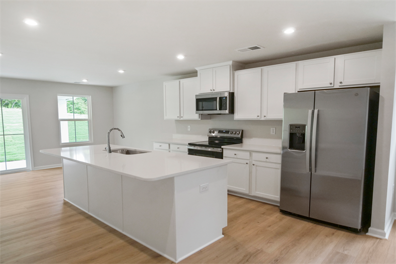 With a spacious two-car garage and everything you need on one easy-to-love level, this home is made for effortless living. Step into a wide foyer—perfect for adding custom storage—whether you’re coming in from the front door or garage. Just beyond, the bright and airy great room flows into a beautiful kitchen with a center island and dedicated dining area, ideal for hosting family and friends.