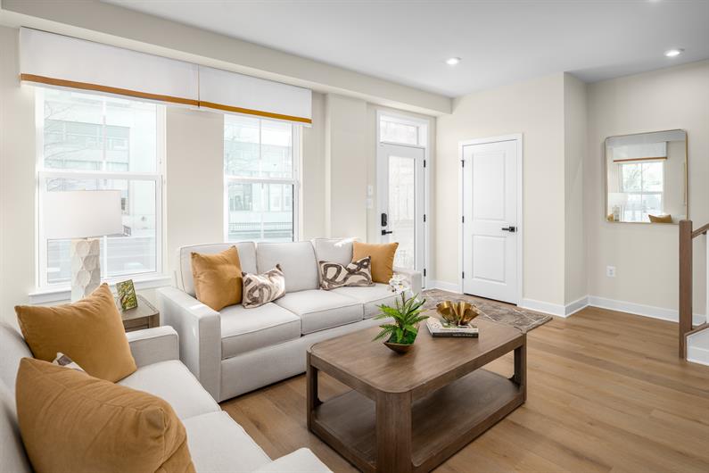 Hancock Townhome available for a May move-in!  End Unit, 4 finished levels, rooftop terrace, covered rear porch, Painted Linen Cabinets, LVP in Rec Room and on the Main Level, Oak Stairs, and so much more!