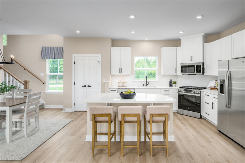 The Robert Frost is a thoughtfully designed two-story single-family home offering 1,900 square feet of living space, complete with a charming full front porch. It features 3 or more bedrooms, 2.5 bathrooms, and a 2-car garage. The main level boasts a flex room, an open-concept kitchen with a large island, a cozy dinette, a spacious great room, a convenient powder room, and a laundry area. Enjoy included upgrades like quartz countertops, stainless steel appliances, white cabinetry and 9' ceilings throughout.