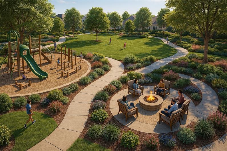 The Orchards is an inviting place to put down roots, with a home that feels just right on busy weekdays and relaxing weekends. At the heart of the community is the Orchard Green; a beautiful open space designed for homeowners to relax, play, and enjoy the outdoors. With winding walking paths, natural landscaping, a playground, and a cozy firepit area, it's a setting where evening strolls, weekend fun, and simple moments together come naturally.