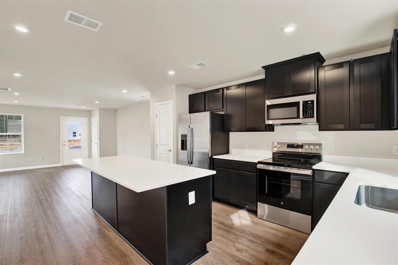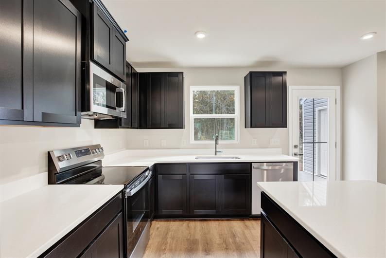 The Parker elevates the cottage collection with stylish design and smart use of space. Enjoy the charm of a large front porch for desirable outdoor living space. Inside, an open floor plan with a convenient half bath creates the perfect place for entertaining. Plus, the main living areas feature luxury vinyl plank flooring! The gourmet kitchen, with quartz countertops and all stainless steel appliances included, flows into the dining area and spacious great room so your loved ones can gather in one spot.