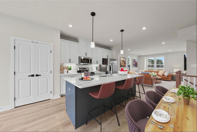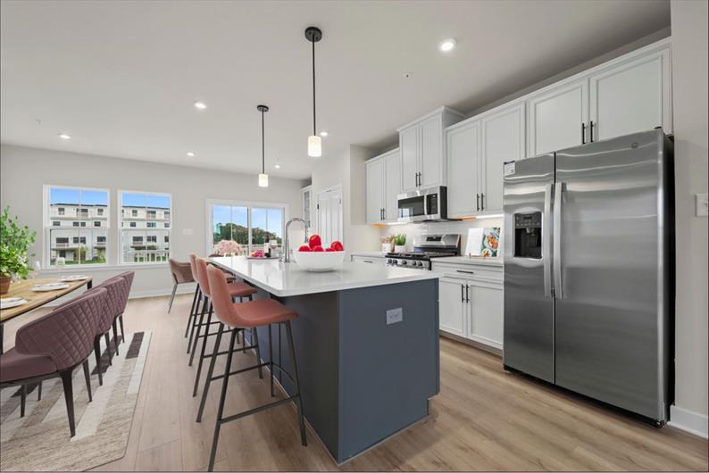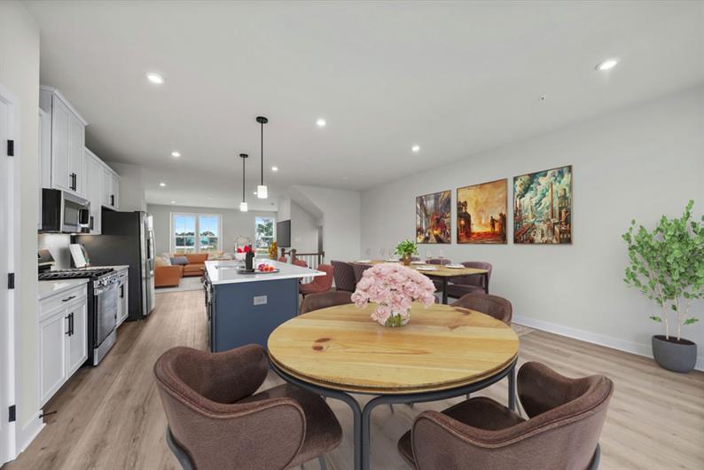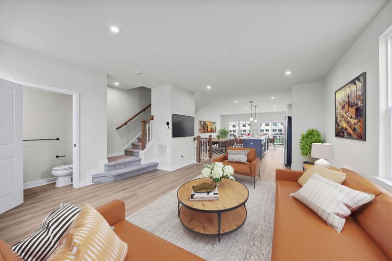 This Strauss townhome offers a rare combination of luxury and location, all while backing to open space. This home features a finished rec room with a half bath on the entry level, perfect for entertaining or extra storage. Step into the main living area and be greeted by a bright, open-concept layout with luxury vinyl plank flooring throughout. The gourmet kitchen is a showstopper, boasting upgraded white cabinetry, quartz countertops, a tile backsplash, a large island, a beautiful kitchen hutch, and a full suite of stainless steel appliances. The morning room and living room flow seamlessly, leading to an included rear deck made for relaxing or dining al fresco. Upstairs, the bedroom level includes two secondary bedrooms, a full hall bath, and a convenient laundry room. The owner’s suite is a true retreat, featuring a large walk-in closet and a spa-inspired en suite bath with a dual vanity, private water closet, soaking tub, and glass-enclosed walk-in shower. The top floor adds even more flexibility, offering a private bedroom with a full bathroom and a rooftop deck for your sunrise coffee or sunset cocktails. Contact us to tour this beautifully upgraded home and make it yours today!
