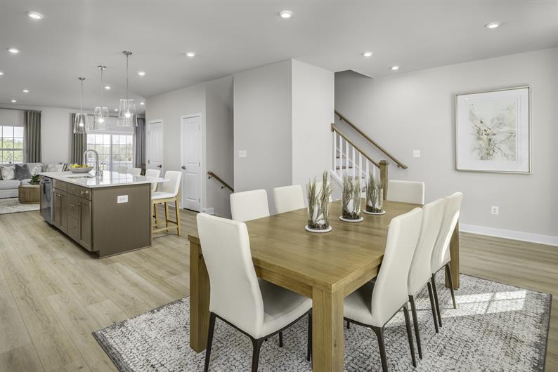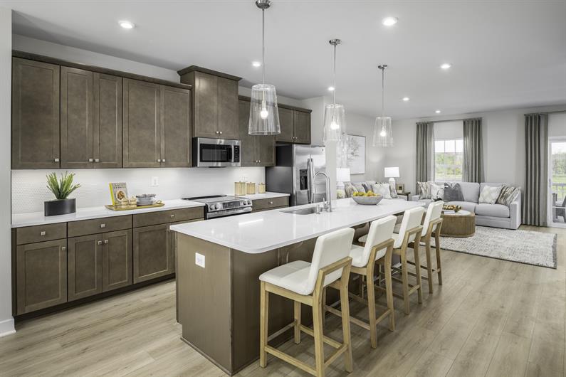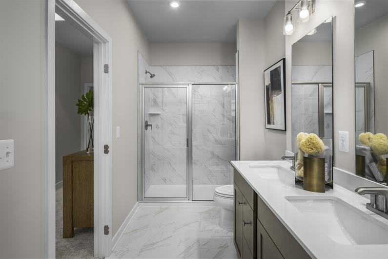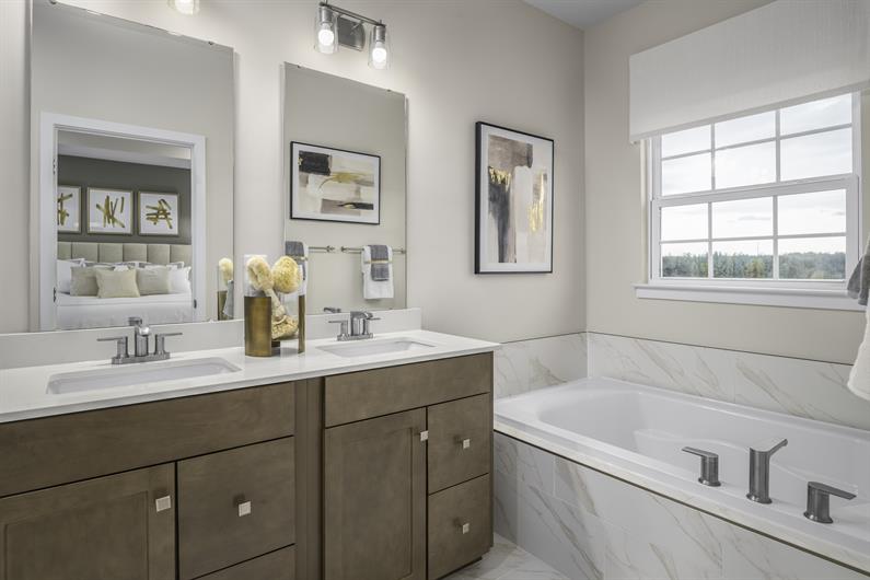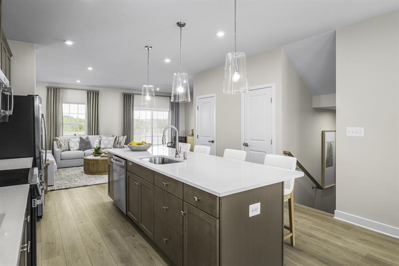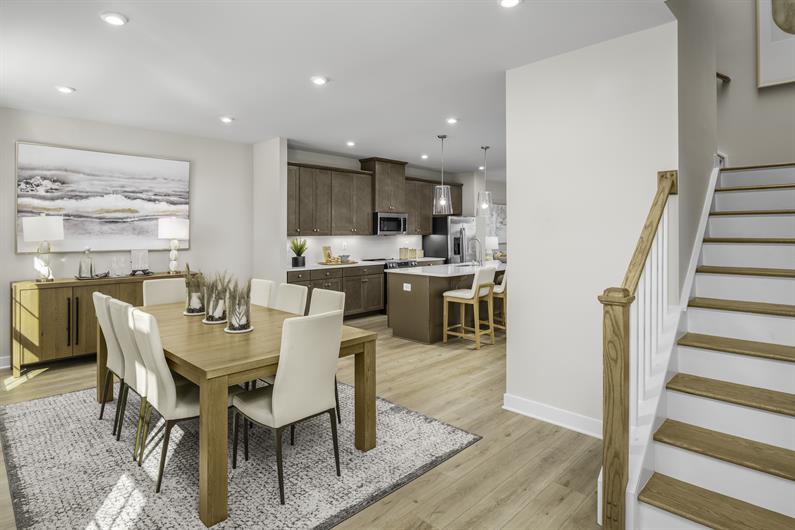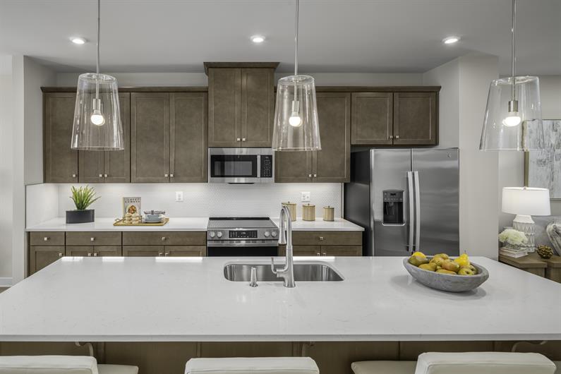 The Schubert, at the largest of the Composer II series homes, offers the space and customizing details of single-family living with the convenience of a townhome. On the main living level, you’re greeted by an enormous and airy kitchen with a huge island perfect for entertaining. The dining room provides space for a more formal meal while the great room is perfect for movie night evenings at home. Up a flight of stairs designed to be elegant and functional, the upper level boasts three bedrooms, two baths, and a full sized 2nd floor laundry with extra shelf space and an optional laundry tub. No need to worry about storage space – generous closets abound in both bedrooms. The Owner’s Bedroom is a private retreat accented with an optional tray ceiling and featuring an enormous walk-in closet. The Owner’s Bath boasts a soaking tub and separate shower with seat and a dual vanity for the ultimate in convenience. Several lower level floor plans are available depending on community.