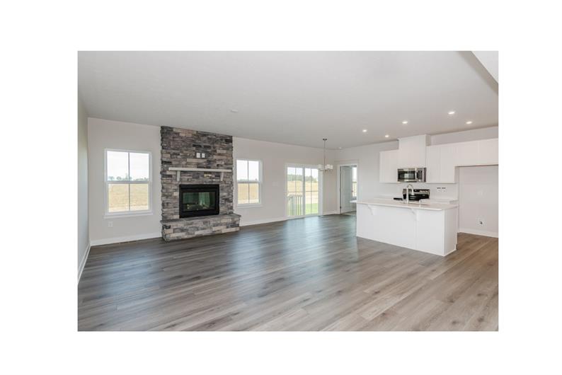 This home is loaded with upgraded finishes like LVP flooring throughout the kitchen, dining room, Great Room, foyer and dining room, stone fireplace with raised hearth and a finished basement with bedroom and full bath.