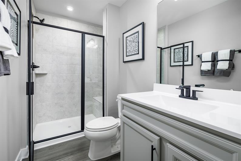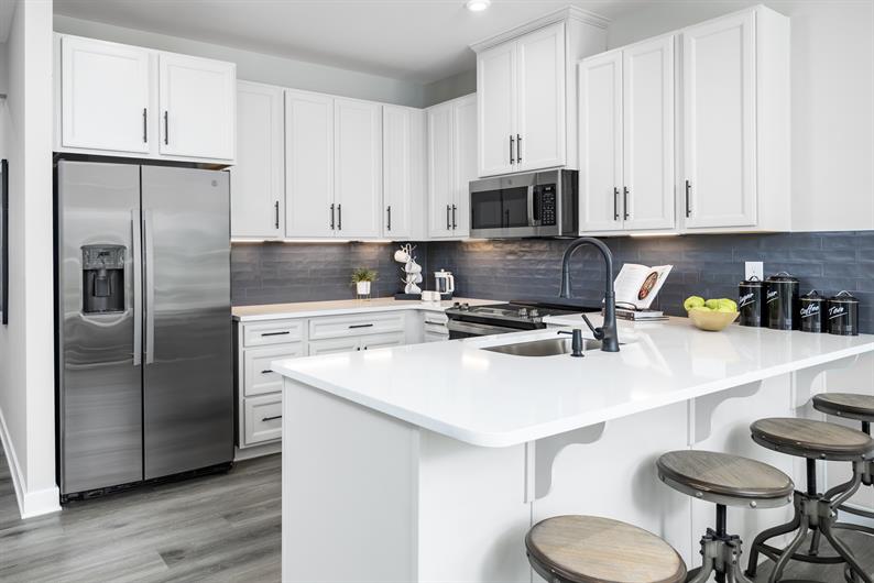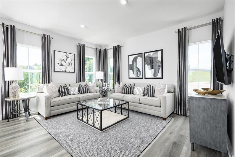 This Roxbury combines comfort and convenience, situated on a desirable homesite backing to wooded open space. Enter through the attached 2-car garage, or the inviting foyer. The open-concept main level seamlessly blends the kitchen, dining room, and living room together, making entertaining effortless. The kitchen showcases upgraded white cabinetry, granite countertops, and included stainless steel gas range, microwave, and dishwasher. Extend your living space even further on the 10' x 14' rear deck – perfect for relaxing with no rear neighbors! Luxury vinyl plank flooring and a powder room complete the main level.