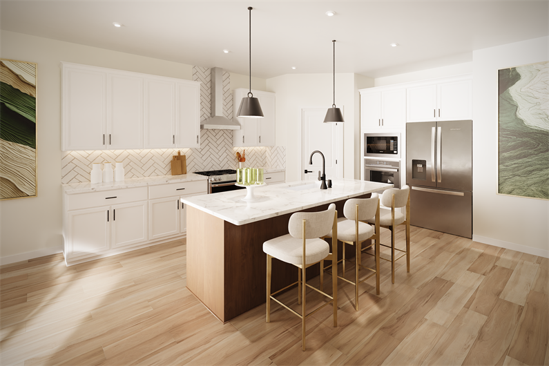 The Meridian is an impressive two-story home that delivers the ultimate combination: generous main-level living and an inviting upstairs sanctuary. With its expansive open layout, abundant natural light, and effortless patio connection, it’s ideal for both everyday living and special gatherings. The gourmet kitchen with oversized island, flexible first-floor bedroom and bath, and bright loft space upstairs make this home as versatile as it is stunning.