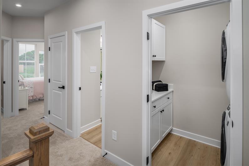 Perched atop the Matisse, this unique two-level home is designed to be both practical and stylish. The first floor features plenty of room and an open floorplan that lets light flow through the entire area. A living room and separate dining area make entertaining a breeze – or choose the optional study and work from home. A powder room and coat closet are conveniently located just off the stair. The kitchen is a gourmet’s dream with huge work island and pantry cabinet. The dinette is perfect for cozy dinners at home and is open to the Family Room. Don’t forget to add the fireplace for even more warmth. A covered porch brings the outdoors in. Upstairs is a truly magnificent Owner’s Suite featuring dual walk-in closets, sitting area, and a bath with an oversized shower, dual vanities and a compartmentalized water closet. You can choose to upgrade to a separate soaking tub and shower for a spa-like feel. Past a convenient linen closet and 2nd floor laundry are two generous bedrooms and a bath with a double bowl vanity. The Picasso comes standard with a one-car garage.